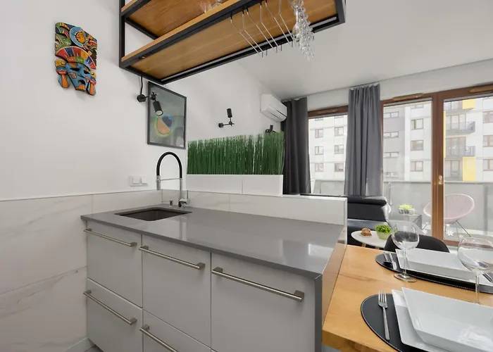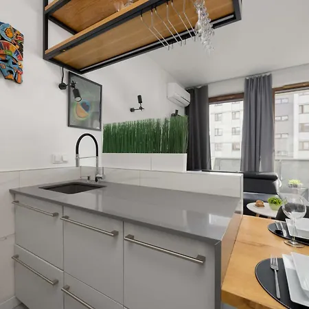 Apartament oferuje piekarnik i zmywarkę do naczyń w aneksie kuchennym. Air-Conditioned Apartment With Balcony In Warsaw By Noclegi Renters leży nie więcej niż 10 min pieszo od przystanku autobusowego Stolbud 01 oraz w niewielkiej odległości od dworca kolejowego Warszawa Służewiec.